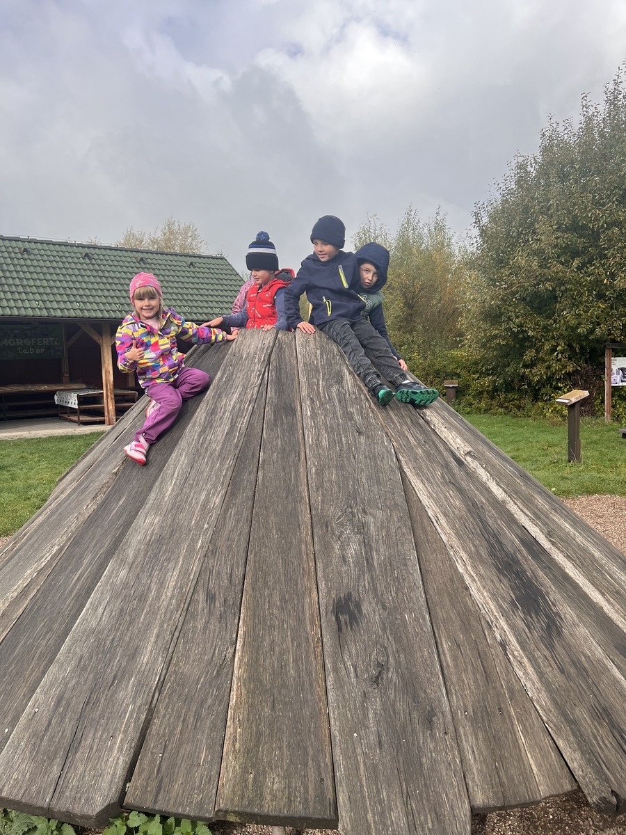 Na závěr jsme navštívili místní geopark, kde si děti mohly nejen prohlédnout ukázky zkamenělin, ale také si pohrát na krásném přírodním hřišti.
