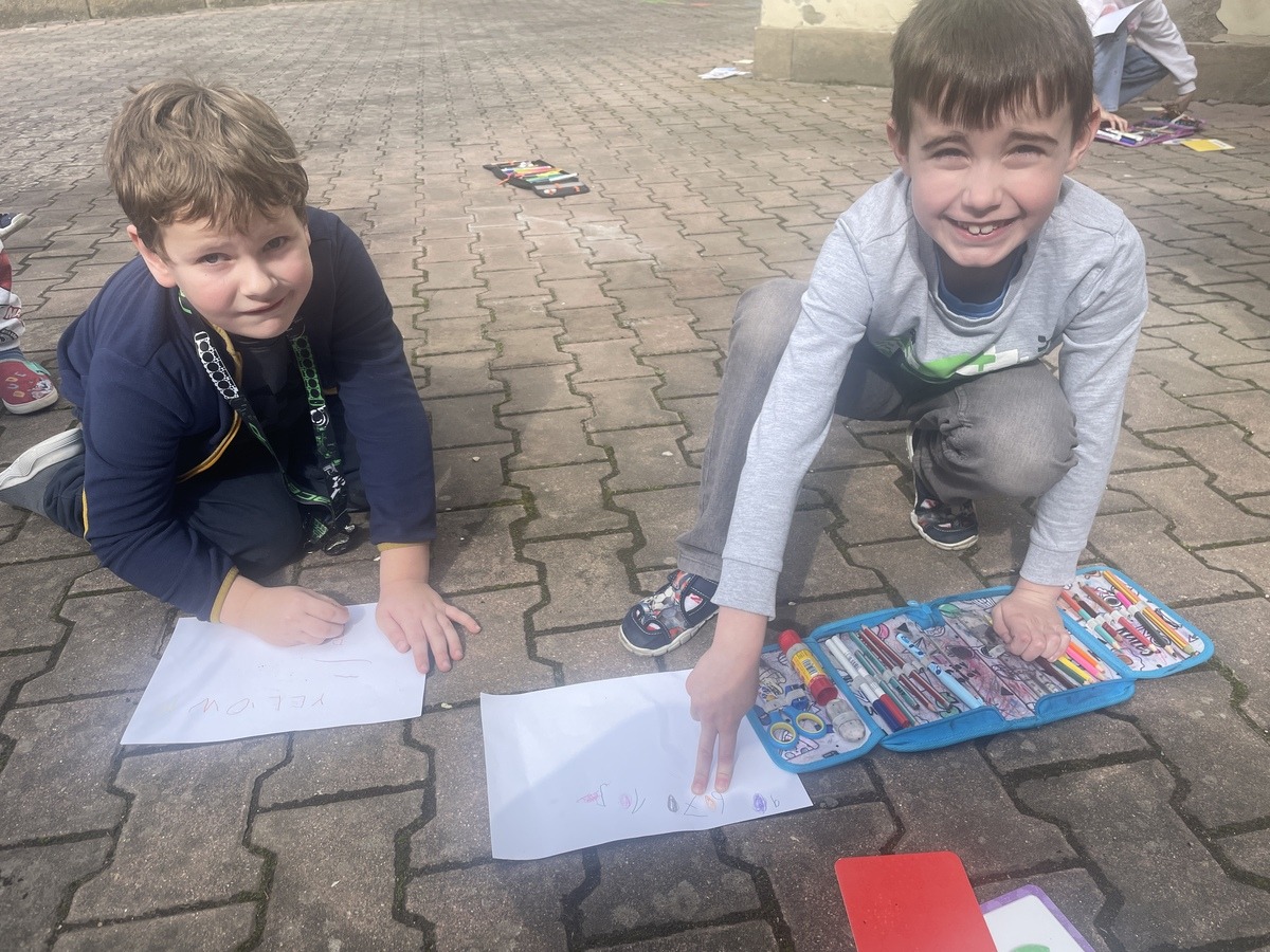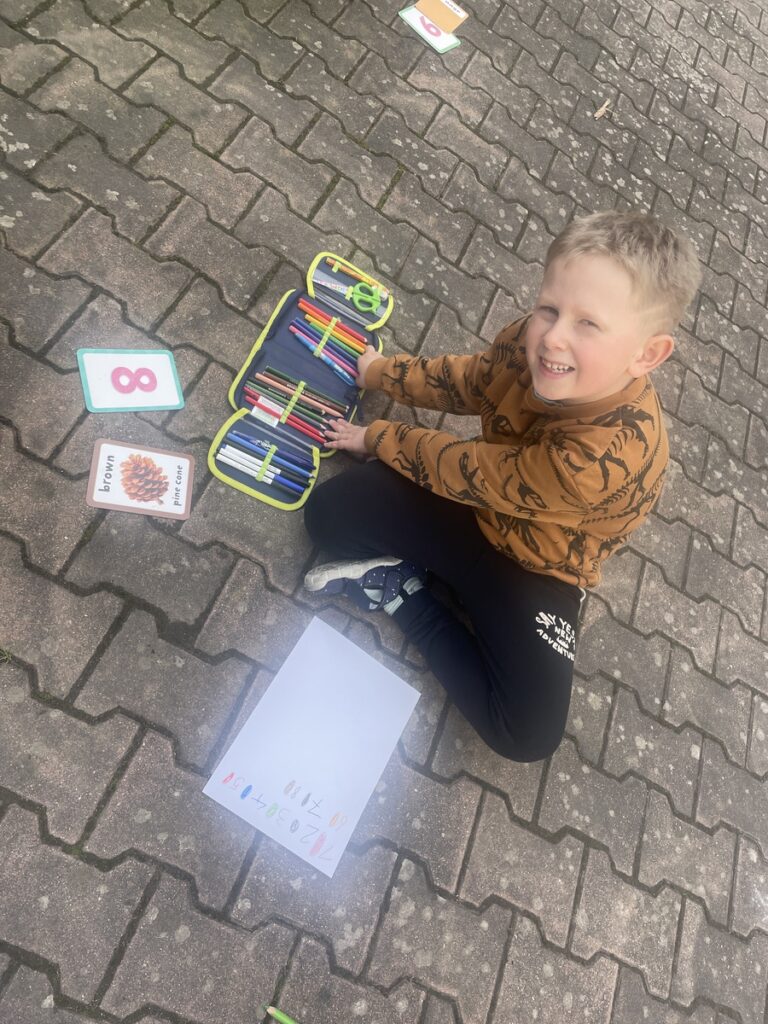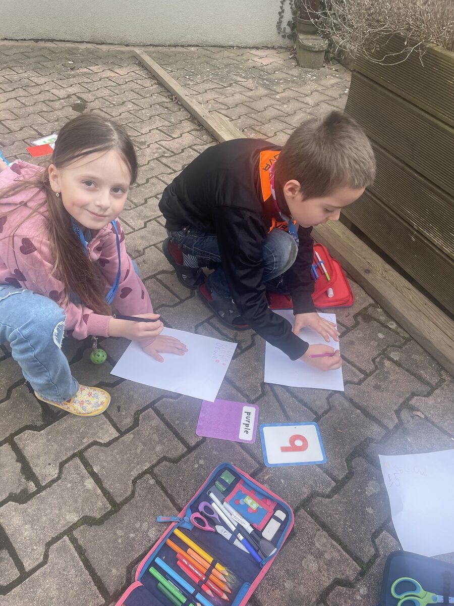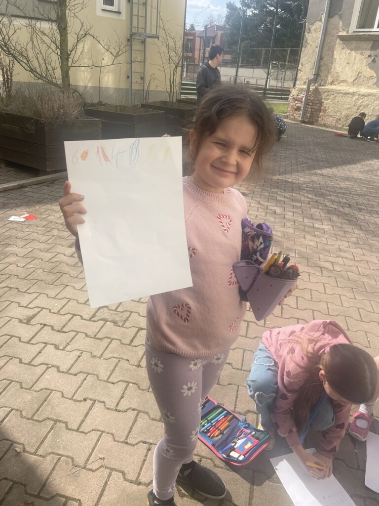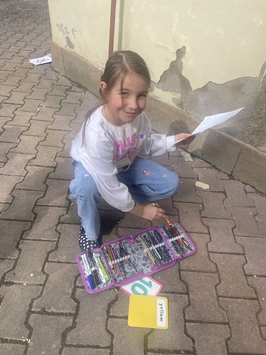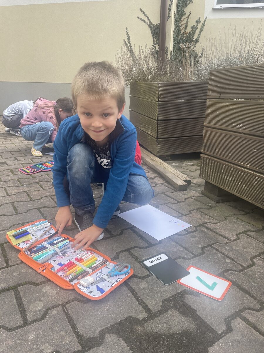 Prvňáčci procvičovali anglická slovíčka na vzduchu. Barvy a číslice už zvládají skvěle nejen hledat, ale také vyslovit. English is fun 🙂