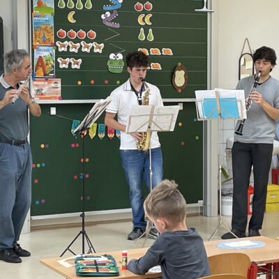 Dne 26. 09. 2025 navštívil pan učitel ze ZUŠ, Bc. Petr Jeníček se svými žáky naši základní školu. Navštívili společně první a druhé třídy, kde dětem zahráli ukázky jejich nádherné hudby.